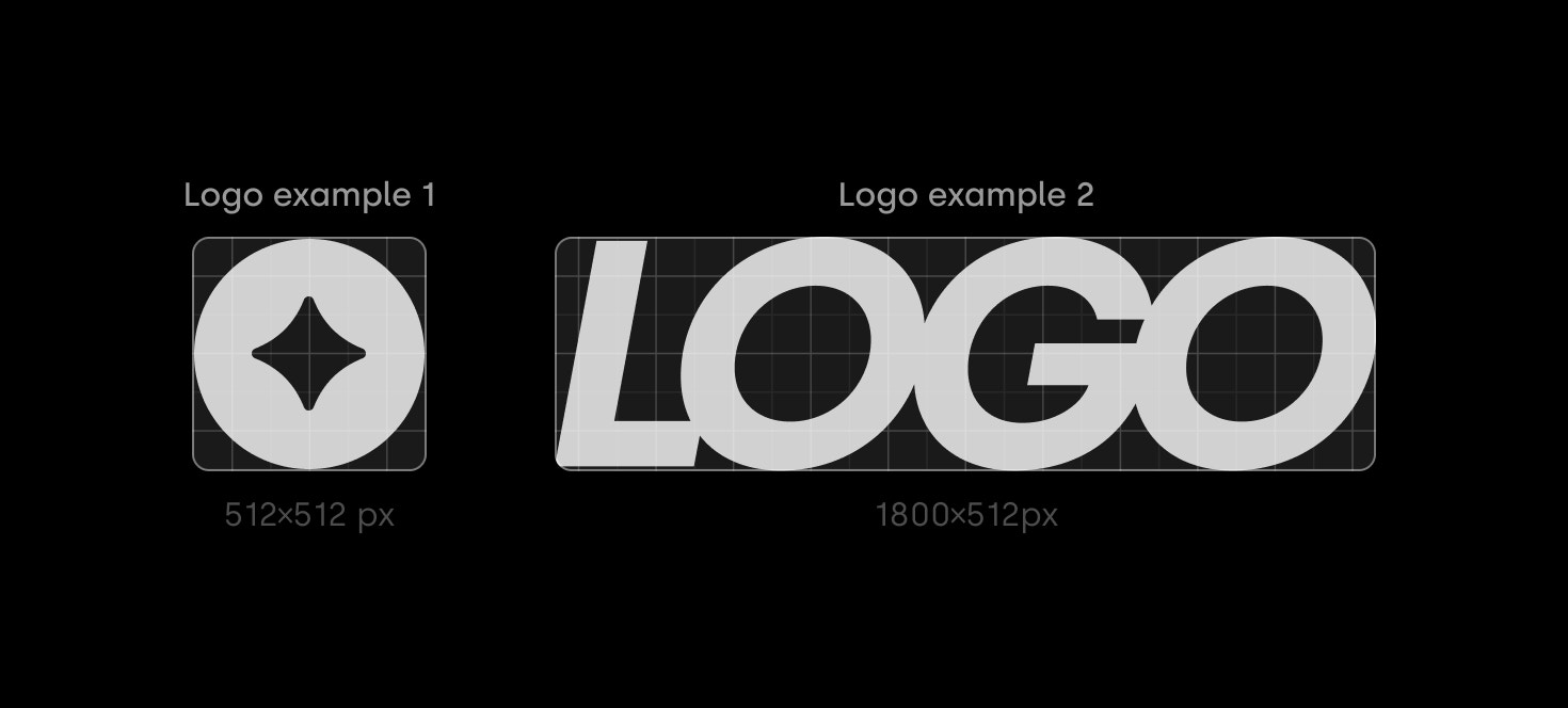 - Size: Minimum height of 512px. The width depends on the logo dimensions.
