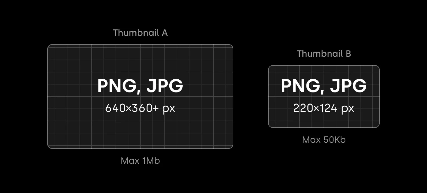 - Both Thumbnail A and Thumbnail B should share the same design if possible, taking into consideration the file size limitation.