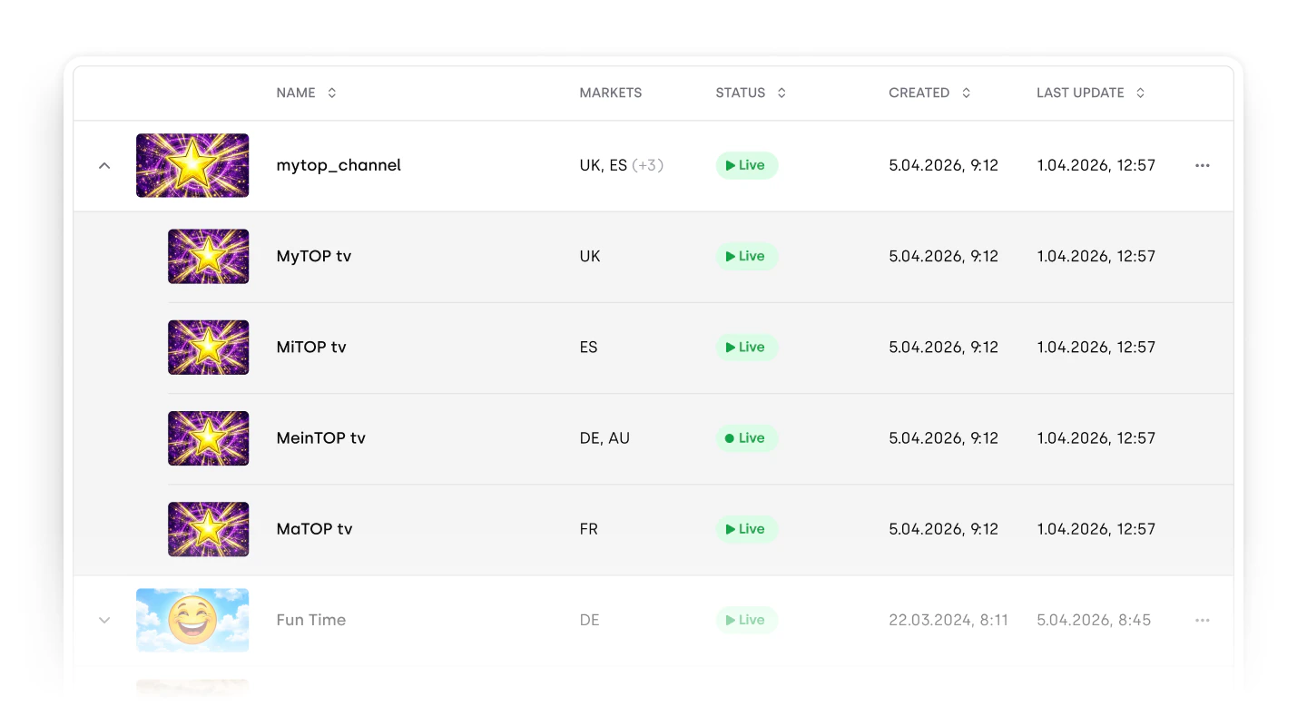The umbrella brand represents the branding of a channel, while localized versions may have different names or flavors. This name is used for internal organization only.- Typically an English or internal-facing name