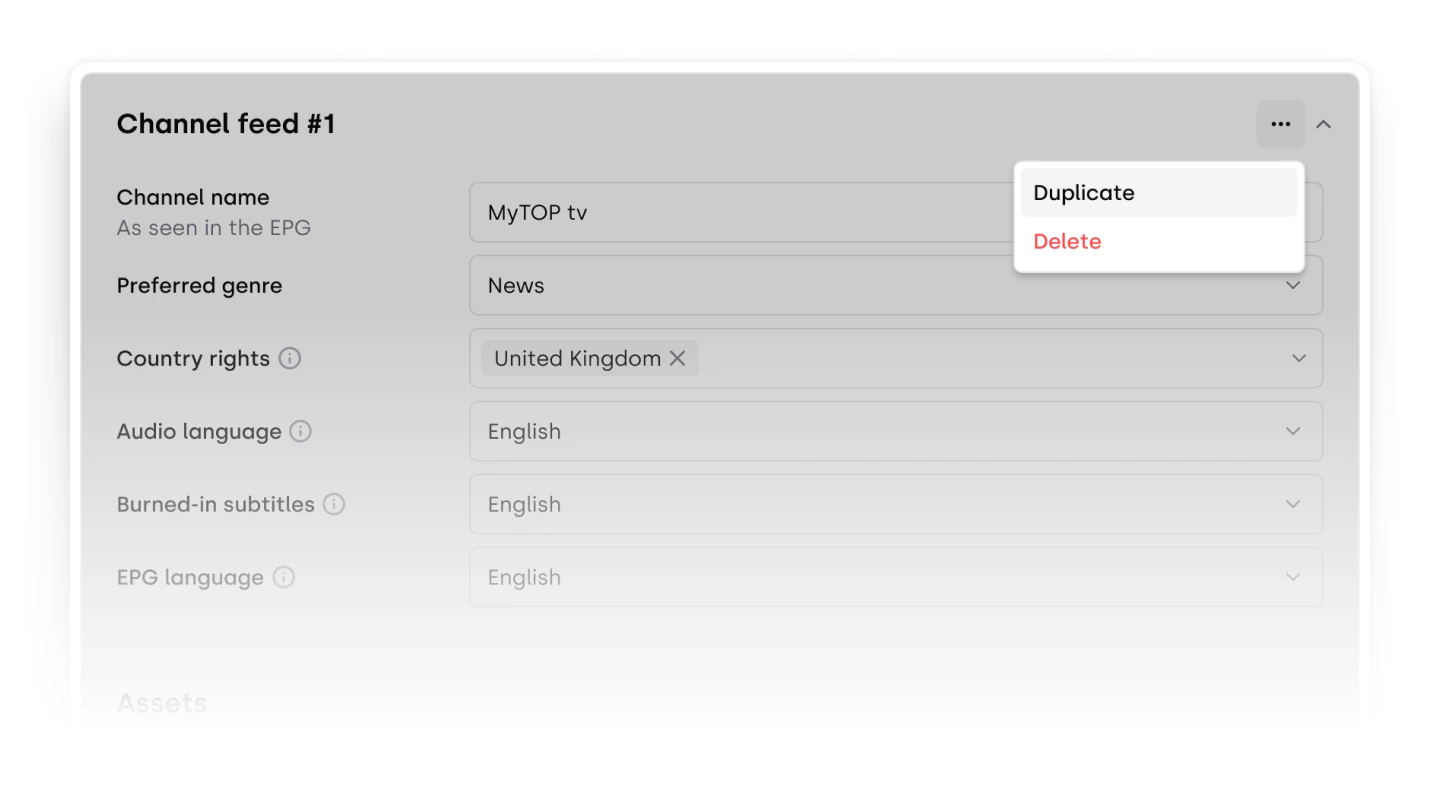 If multiple localized feeds share similar details, you can duplicate an existing feed to save time.