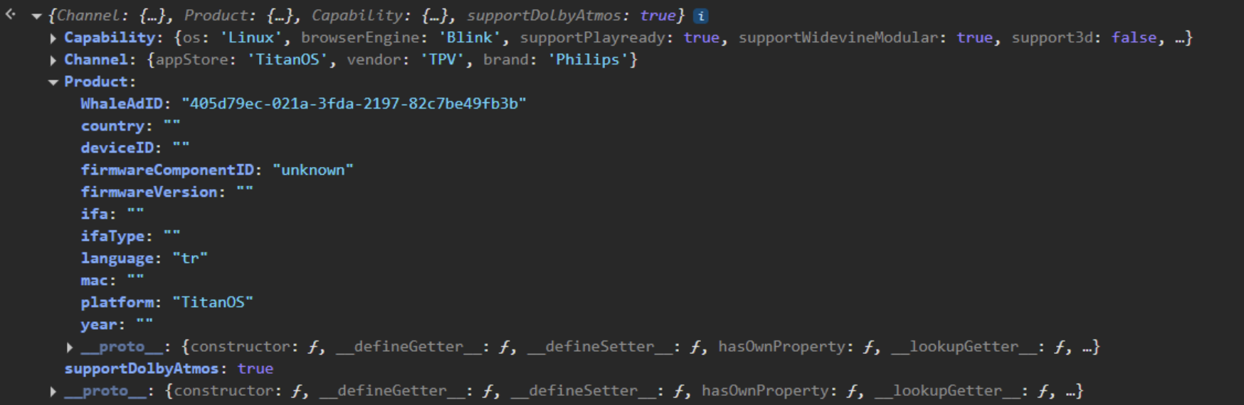 The Capability.supportDolbyAtmos property, returned by the getDeviceInfo function, has the following behaviors: